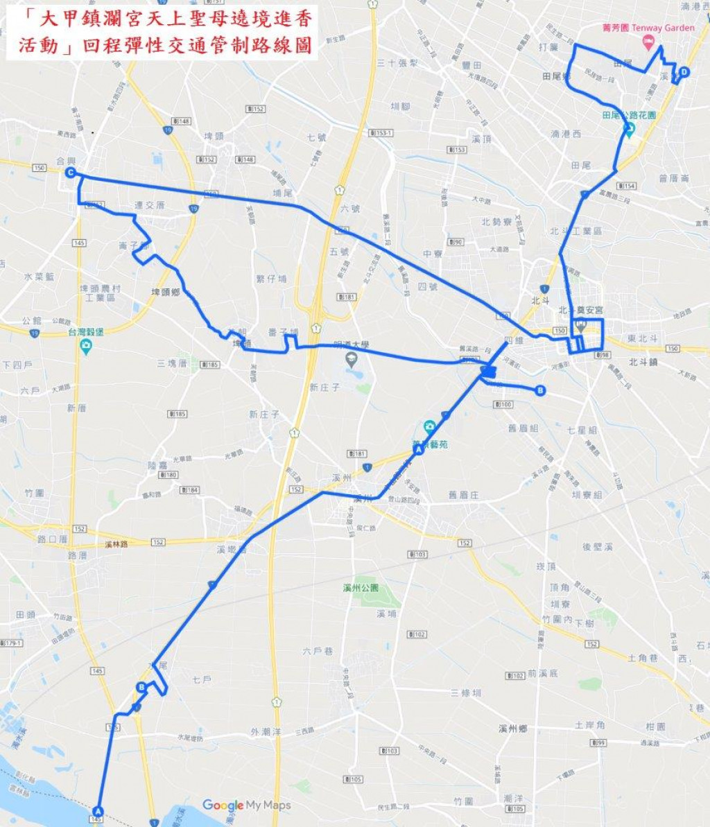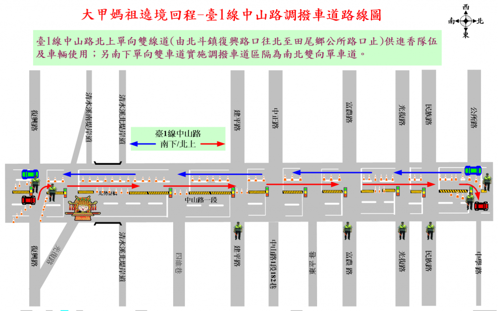 轉知:彰化縣警察局北斗分局為維護115年4月23、24日「大甲鎮瀾宮天上聖母遶境進香活動」行經期間交通秩序,將視交通狀況彈性管制車輛